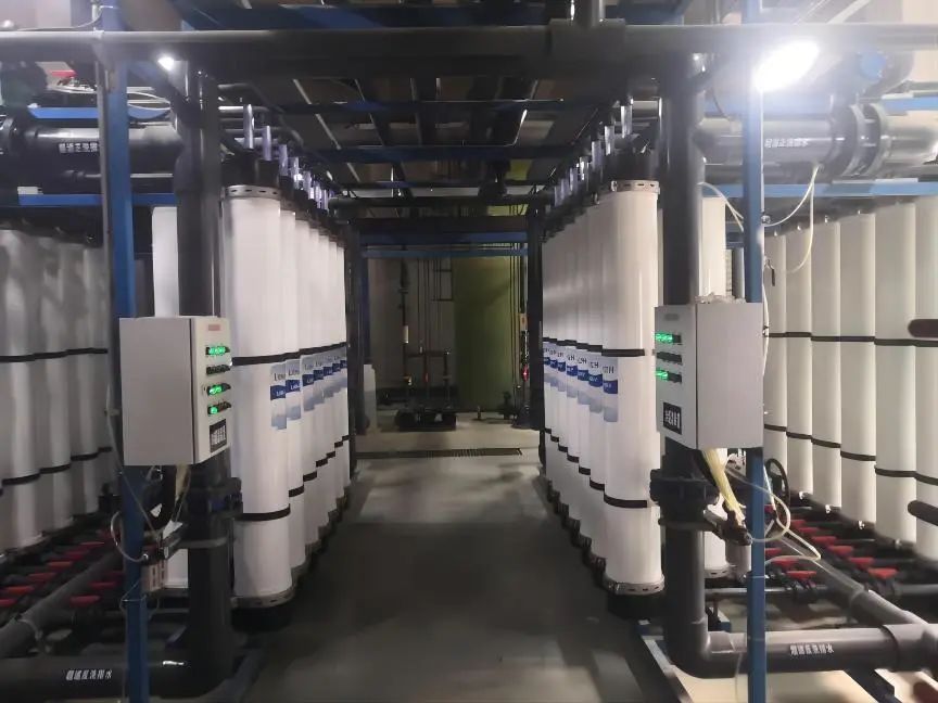 该光伏企业坐落于江苏省盐城市亭湖区,其企业建设的纯水项目分为两期,目前一期、二期纯水项目均已投产。项目主要工艺为超滤+反渗透的“双膜法”工艺,两期设计产水能力为20000 t/d,原水为市政自来水。我司提供的超滤膜主要作为RO的前端预处理,以保证RO进水满足SDI15 < 3,浊度< 0.1 NTU的要求。