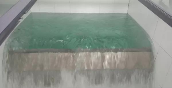 图 20.经过活性炭处理后的水很清澈,可以看到底,蓝绿色是折射的原因。