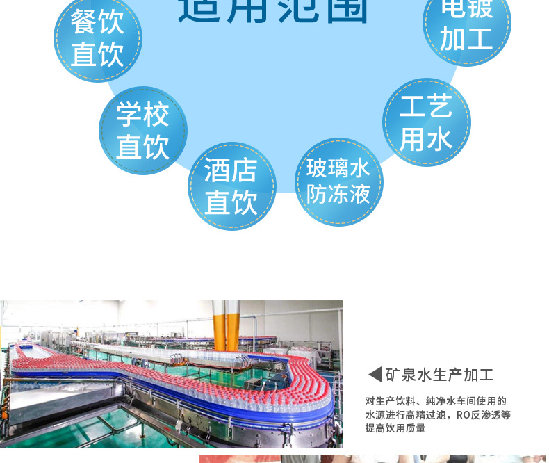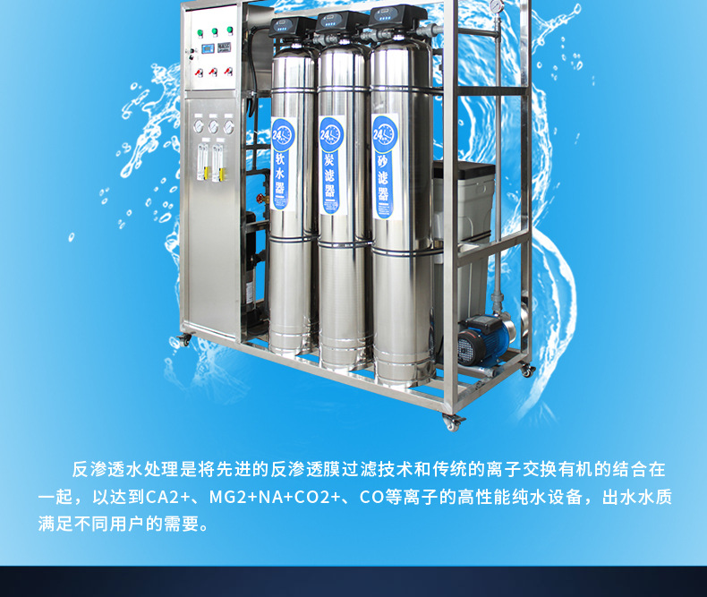 我司生产的工业反渗透设备主要用于工业生产用水的纯水制取装置。可以用于:光电行业用水制取、精细化工行业用水制取、电镀涂装行业用水制取、电子半导体行业超纯水制取、精密机械行业用水制取、电厂锅炉行业用水制取、代替各类蒸馏水及超纯水供水等。本公司可根据不同需要定制生产,从1T/H到1000T/H均可承接。(0.25吨/小时、0.5吨/小时、1吨/小时、2吨/小时、3吨/小时、5吨/小时、10吨/小时、20吨/小时....100吨/小时反渗透设备专业生产厂家。)
