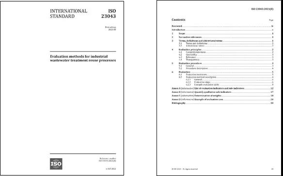 ISO 23043《Evaluation methods for industrial wastewater treatment reuse processes》(工业废水处理与回用技术评价方法);