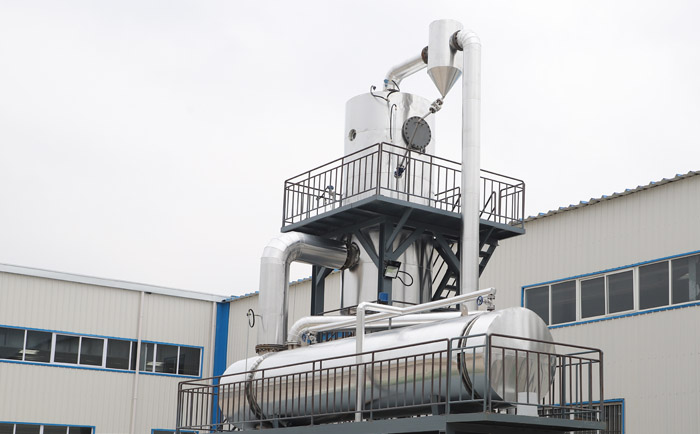 被提高热能的二次蒸汽打入加热器对原液再进行加热,受热的原液继续蒸发产生二次蒸汽,从而实现持续的蒸发状态。
