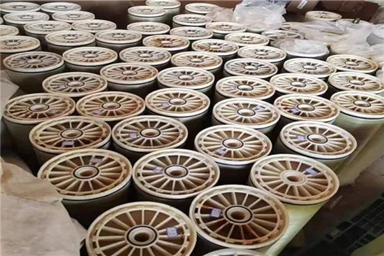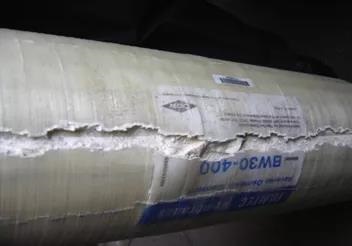 进水端污染严重 ,玻璃钢外壳沿轴向破裂,进水格网突出。膜解剖后,膜表面出现气泡和分层。