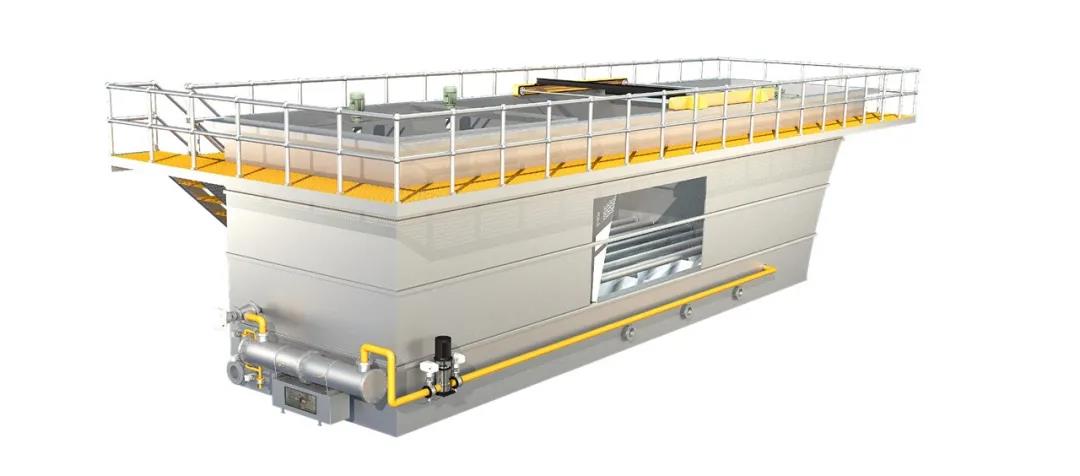 溶气气浮占地面积一般要小于常规沉淀池,可适用于去除进水浊度<50NTU且沉积较为缓慢的轻质颗粒(如凝聚的NOM)、藻类或油脂等,一般可得到浊<0.5NTU的澄清水。