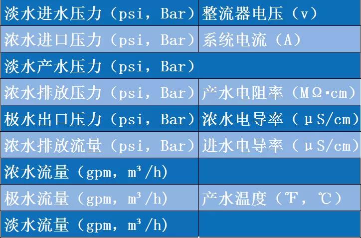 PS:判断EDI系统是否污堵需从压力及流量两方面综合考虑,例如产水恒流系统中流量虽无变化,压差及进水压力明显上升即提示污堵。