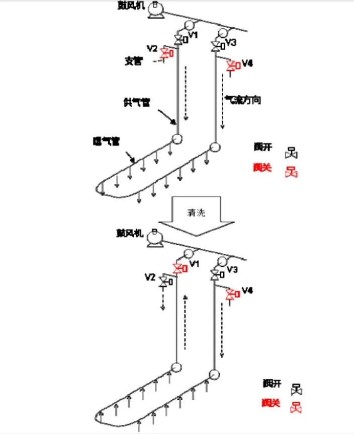 冲洗:清洗曝气管,大约每次1到5分钟。
