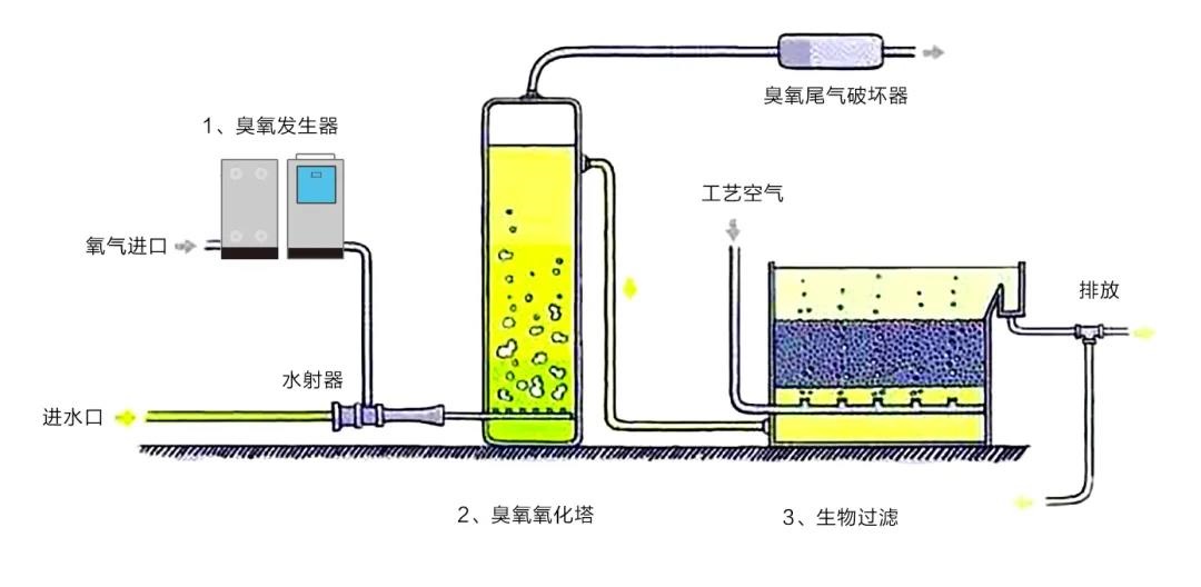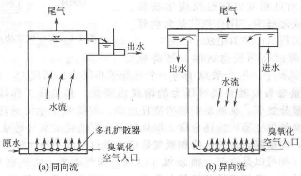 臭氧接触器有同向流臭氧接触器和异向流臭氧接触器。前者氧利用率低,一般为75%。