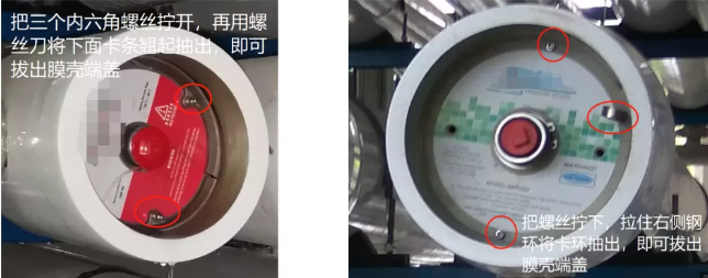 按上图方法并使用对应工具就能将膜壳端盖拆开。