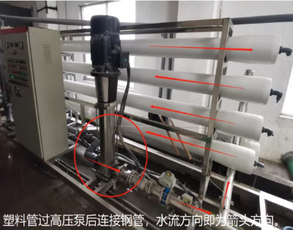 塑料管承压低,钢管承压高,可通过高压泵确定膜壳的水流方向。