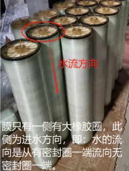 确定好水流方向后,将膜无密封圈一端先推入膜壳,距离膜壳口留15cm左右距离停止。