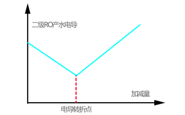 如上图所示,开始加碱时,由于二氧化碳不断被去除,电导率逐渐下降,到达转折点时接近除尽,继续加碱则电导率又会上升。因此,加碱量在转折点附近较为合适。