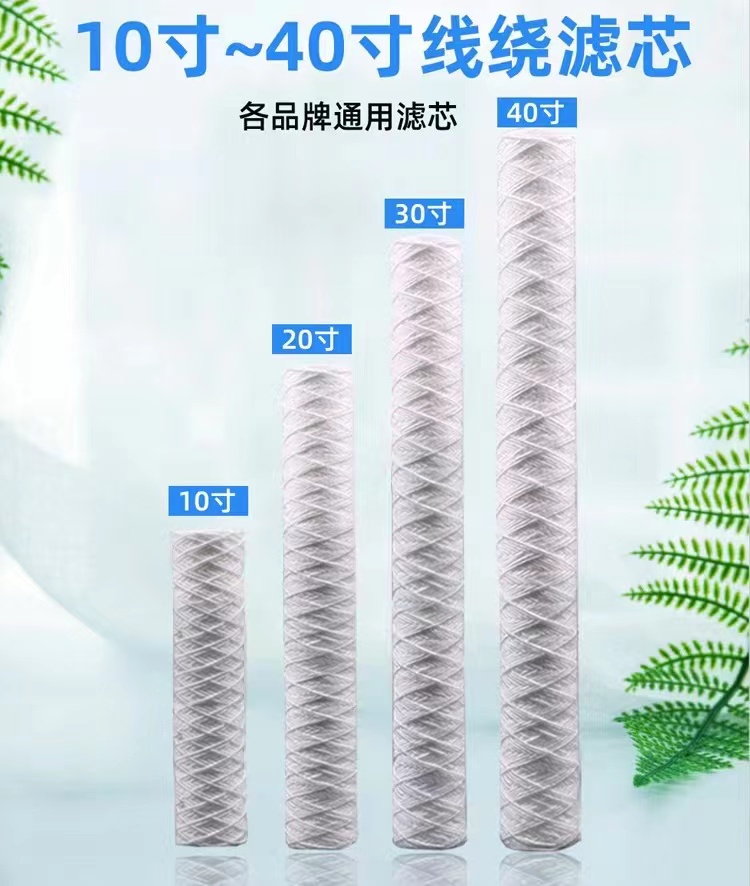 由具有良好过滤性能的纺织纤维纱线精密缠绕在多孔骨架上精制而成的。其纱线材料有丙纶纤维、晴纶纤维、脱脂棉纤维等。缠绕时通过控制纱线的缠绕松紧度和稀密度,可以制成不同精度的滤芯。