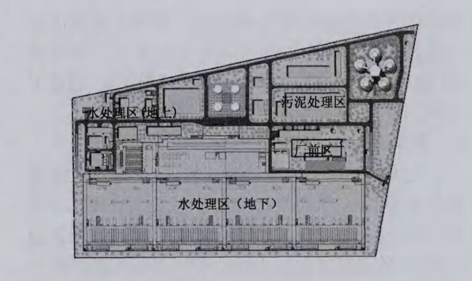 厂区中、南部地下部分为水处理区,分为地下两层局部三层布置。