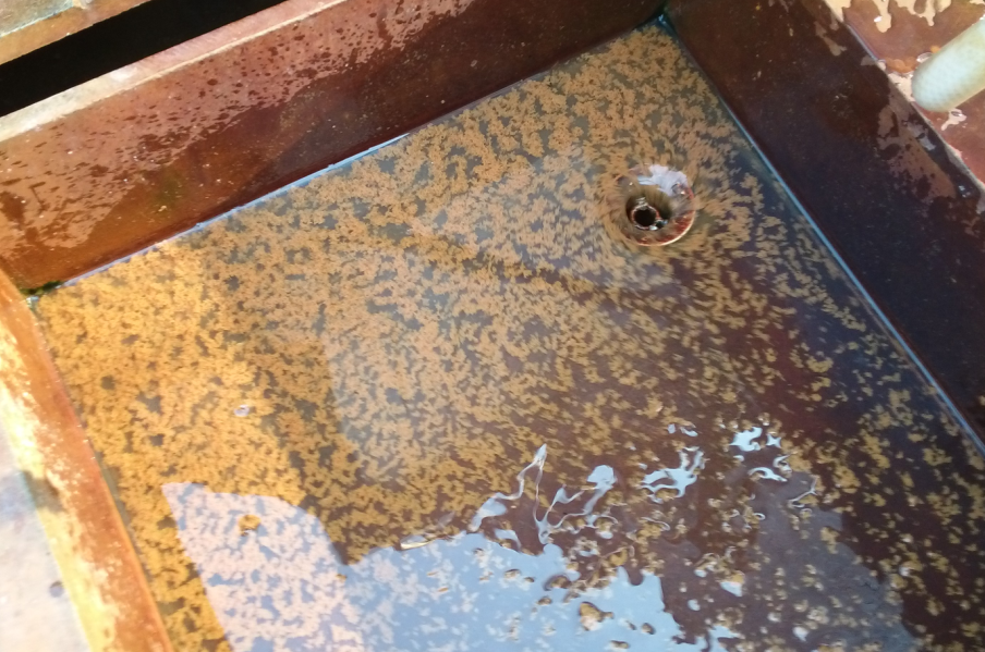 含铁锰的地下水暴露在空气中一段时间后,沉淀出棕黄色沉淀物