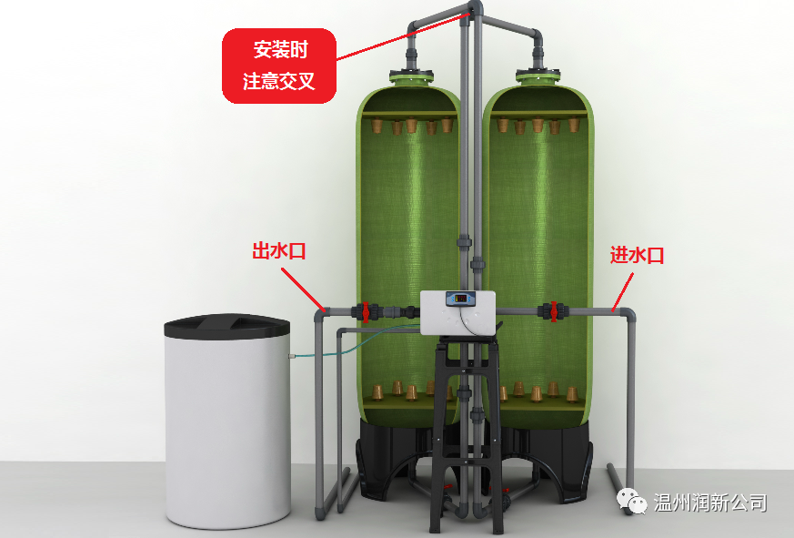 (控制阀与上下布水器连接的交叉接错将使系统不能正常工作)
