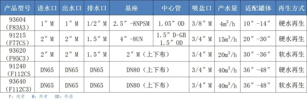 ◎ F83A3、F77CS、F112CS为硬水再生,其他为软水再生。