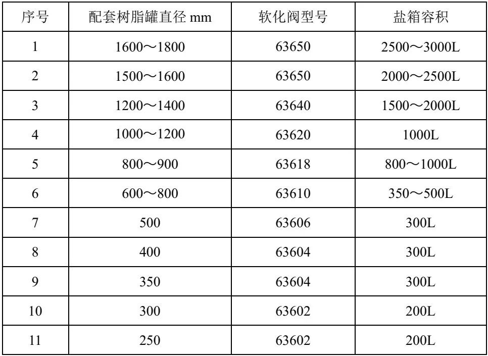 注:本表仅列自动软化阀,如需手动控制,可选择相同出水量的手动软化阀。