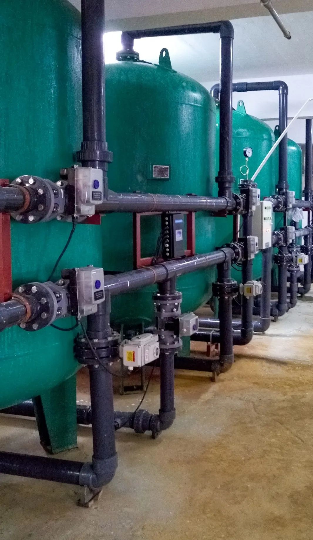 采用F109球阀控制系统(20套润景DN65电动球阀+F109),通量大,耐磨损,抗结垢