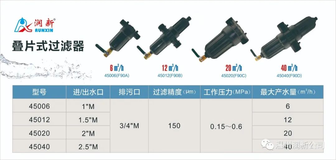 润新手动叠片式过滤器安装在设备的进水端,起到粗过滤的作用,应用广泛。