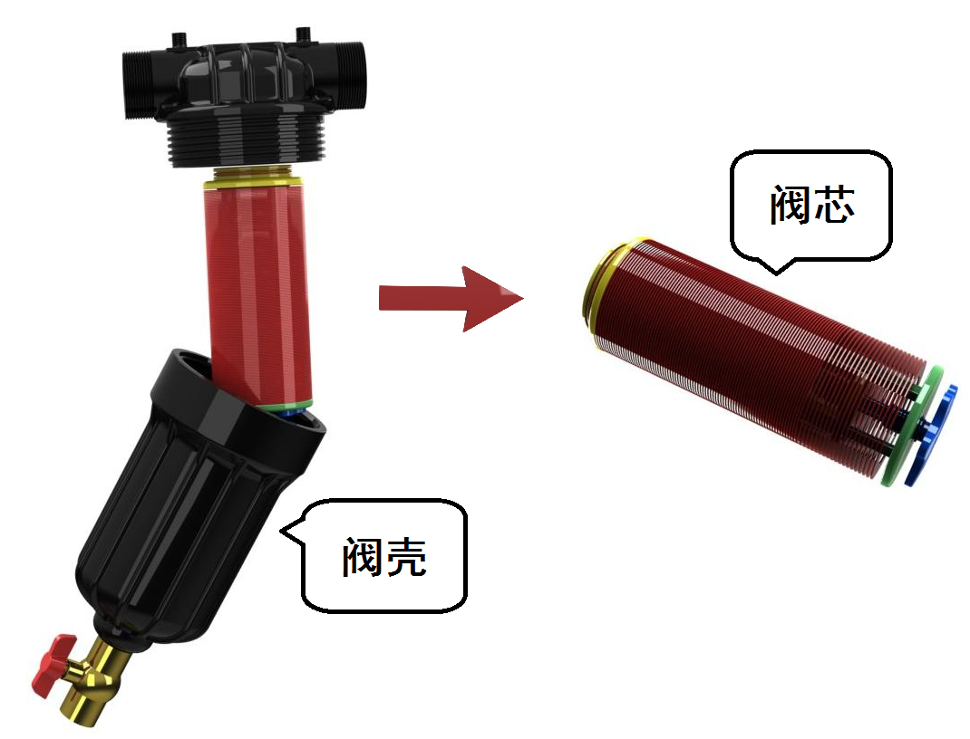 润新手动清洗叠片式过滤器由阀芯、阀壳、阀体组成,其中阀芯为特定精度的塑料叠片材料。过滤时,叠片在水压的作用下压紧,水流流过叠片,杂质被挡在叠片外或者沟槽间,从而起到过滤作用。
