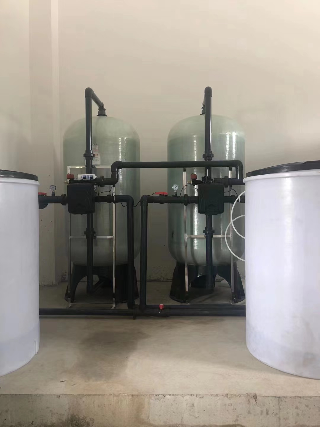 以市政自来水为进水,通过树脂中的Na+ 置换水中的Ca2+、Mg2+ 等金属离子,并吸附到树脂上,从而使水得到软化的装置。饱和后的树脂在水处理自动控制器控制下用浓盐水再生,可恢复交换能力,循环使用。