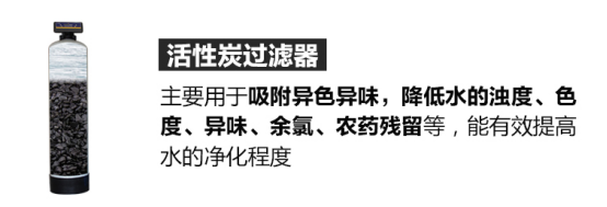 活性炭过滤器在结构上与多介质过滤器基本相同,不同的是内部装有具有较强吸附功能的活性炭,用于去除经过滤未去除的有机物,吸附水中的余氯,使出水余氯≤0.1mg/L,SDI≤4。氯属于强氧化剂,对各类膜均有破坏作用,特别是反渗透膜对余氯十分敏感,因此对于以城市自来水为水源的纯净水生产线,活性炭更主要的功能是吸附水中余氯,起到保护RO膜的作用。