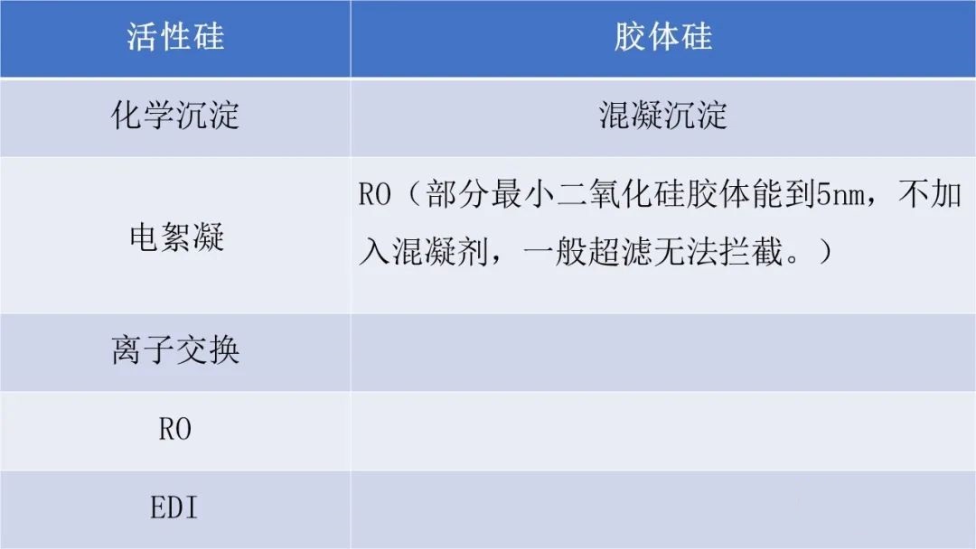 三、针对不同形态的二氧化硅其去除方法各不同,传统的去除二氧化硅的工艺为: