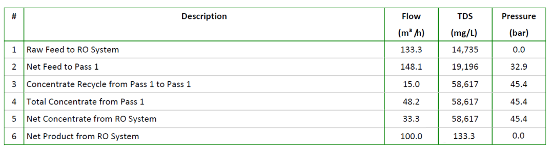 (2)浓水回流量设计为10t/h,提高反渗透膜表面错流流速,并满足反渗透膜最低浓水量要求,浓水回流至高压泵入口。