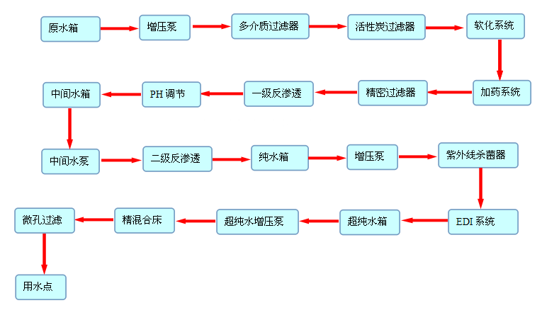 1、光学超纯水设备工艺流程图: