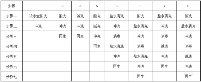 当设备运行环境适于微生物生长,或者进水中存在较多的细菌和藻类的时候,EDI膜块和系统也会发生微生物污堵。可以采用方案3、4中的方法用高PH盐水进行清洗。如果微生物污堵情形比较严重时,可以采用方案5进行清洗。如果同时伴有无机物污堵, 可以按照方案6加入酸洗步骤。