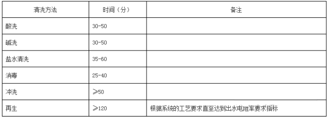当进水中的铁和锰含量高,或者高TDS的水以外进入到EDI膜块时,也会使淡水室的离子交换树脂或者浓水室形成无几物污堵。可以采用方案2进行清洗。