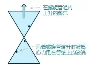 (3) 螺旋分离——螺旋分离属于物理分离法,它可有效实现汽-液分离。热原具有水溶性,仅存在于水以及蒸汽/水混合液滴中。由于液滴与蒸汽的密度差,在沿着螺旋轨道高速运动时,液滴和蒸汽的离心力存在非常大的差异,从而可以实现汽-液分离。