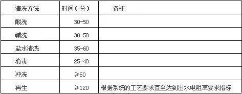 5、启动清洗泵,调节浓水进水阀,以规定的流量循环清洗(酸洗步骤)。(参见附表)