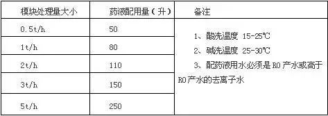 注:对于膜块数量大于 1 块时,按表中配液的数量乘以膜块数量。
