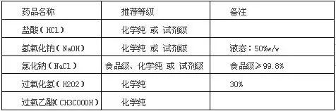清洗用化学药品规格:所有化学药品必须使用推荐的等级或高于推荐的等级。