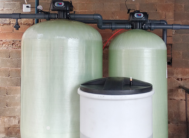软化水设备是用Na+离子替换出水中的Ca+离子和Mg+离子,降低水的硬度,达到所需水质的要求,一般是用阴阳离子交换树脂进行软化,随着阳树脂中Na+离子的减少,Ca+离子和Mg+离子比重的增加,软化交换功能下降。而软化水设备中树脂吸收一定量的钙镁离子之后,就必须进行再生,再生过程就是用盐箱中的食盐水冲洗树脂层,把树脂上的硬度离子在置换出来,随再生废液排出罐外,树脂就又恢复了软化交换功能活性,达到重复使用。
