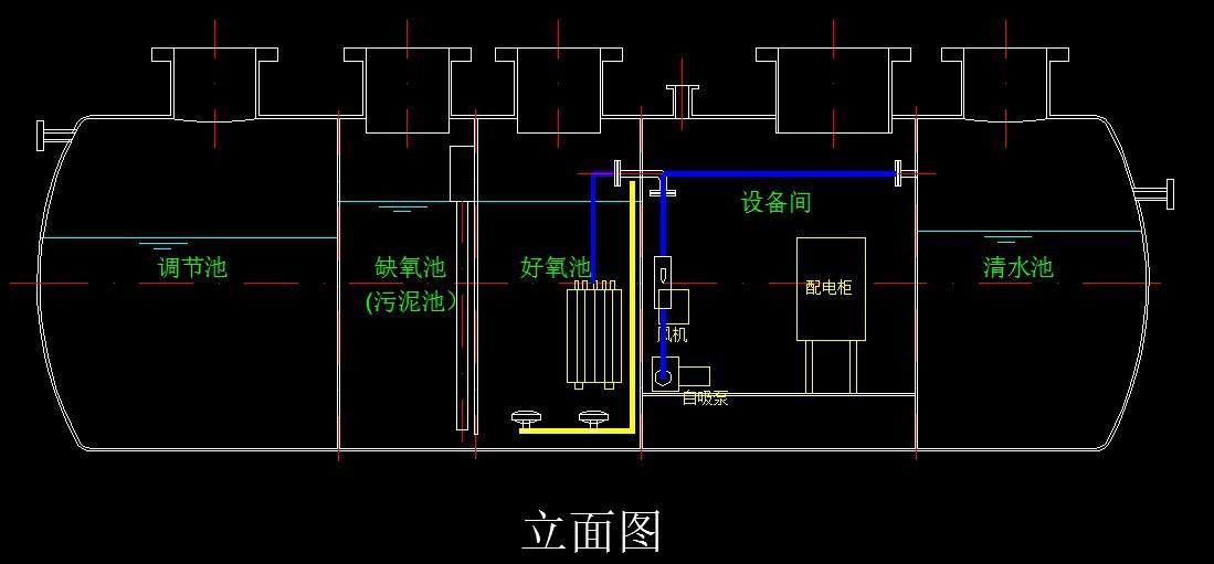 调节池:调节池主要是调节污水水量和水质,同时还可用作事故排水存储场所。一般容积建议为日处理量的35%-40%。调节池建议客户自建钢混结构,也可包含在成套设备内。